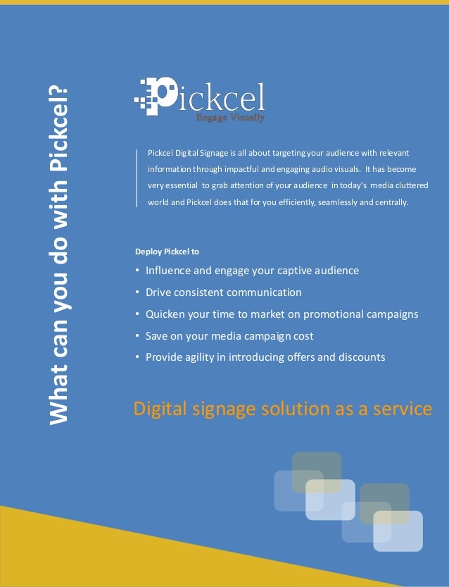 Pickcel - Cloud Digital Signage Solutions. Web pickcel is a leading cloud digital signage software solution provider. Search for 'pickcel digital signage.