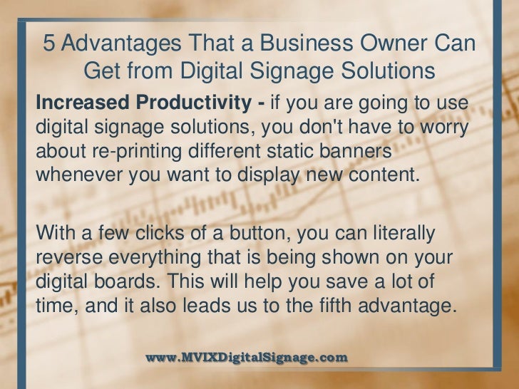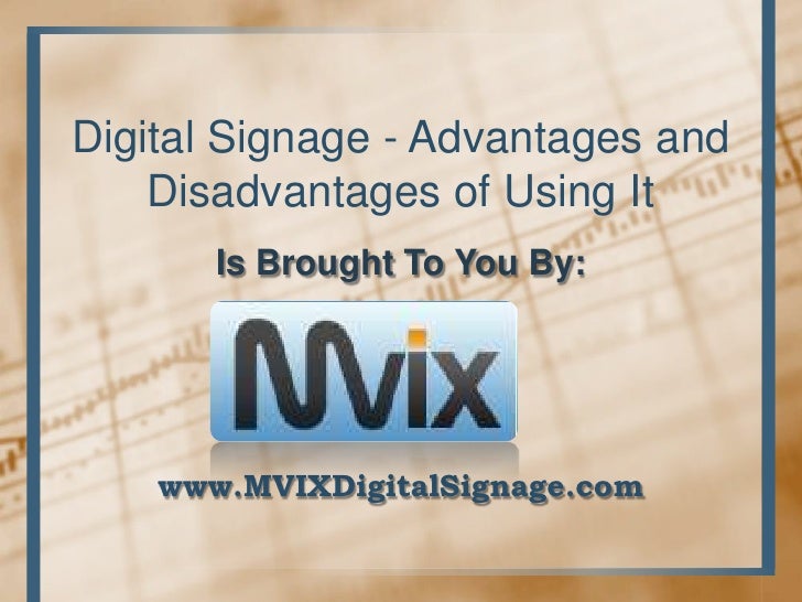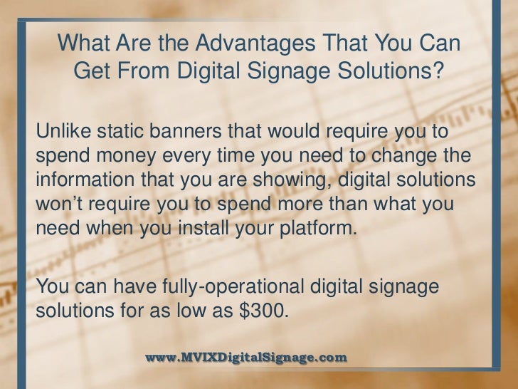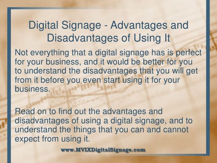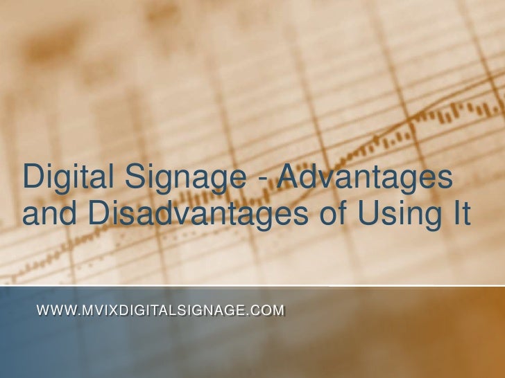 Digital Signage Advantages And Disadvantages. There are a lot of advantages to using digital signage, but it depends on what you’re trying to achieve/what your function is. Web 6) show more than just static images.